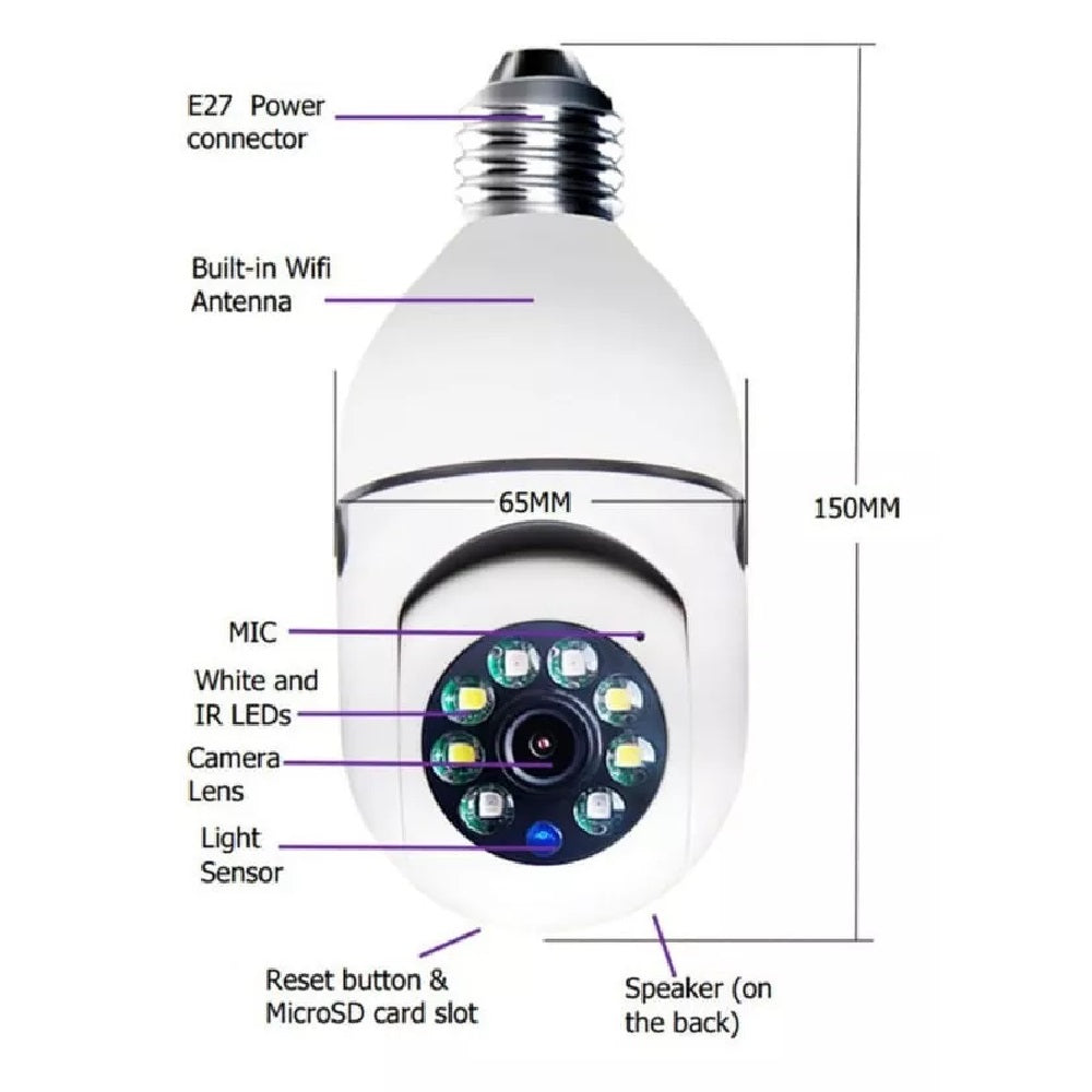 ✅ Instalación Fácil: Compatible con cualquier portalámparas E27 convencional. La cámara es completamente inalámbrica, sin necesidad de cables adicionales.