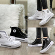 🔸 Detalles Icónicos: Además de su estilo inconfundible, los Converse All Star se destacan por sus ojales metálicos y cordones ajustables, que te garantizan un ajuste perfecto. Están disponibles en una amplia gama de colores y estilos, desde el clásico blanco y negro hasta opciones más atrevidas que reflejan tu personalidad.
